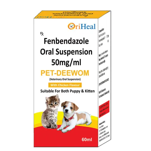Oriheal Pet Deewom Suspension is a highly effective pet dewormer medicine formulated with Fenbendazole Oral Suspension (50mg/ml) to provide reliable pet parasite treatment. It helps eliminate harmful intestinal worms and supports better digestion, immunity and overall pet health.