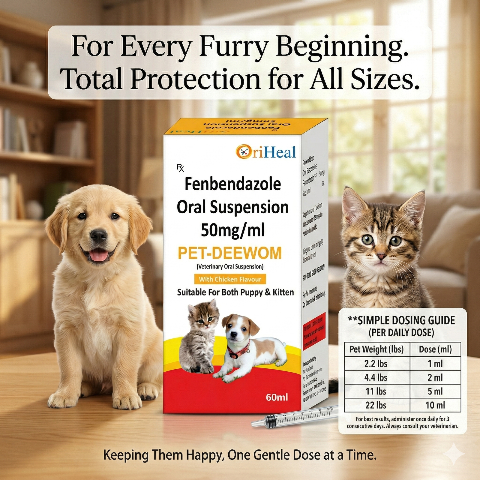 Looking for an effective pet parasite treatment? Oriheal Pet Deewom Suspension offers a trusted, affordable and easy solution for routine pet deworming.